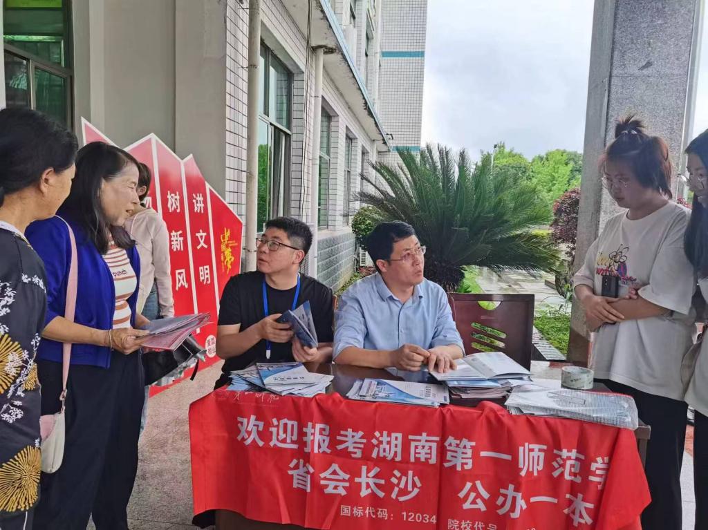 根据公司2024人才招聘协调会以及《2024年线下招生宣传工作方案》,6月24日至28日,太阳成集团tyc122cc经理陈明、副书记胡英、副经理王竹苗分别带队分赴湘西州第二民族中学、永顺县第一中学、花垣县第一高级中学开展招生宣传咨询。此外,马克思主义公司党委书记阮东彪带队到长沙用心高考复习公司、安化一中开展招生宣讲并回答家长和考生的咨询。太阳成集团tyc122cc学工班主任于澎赴娄底、安化、吉首等地,参加湖南高考招生市州咨询会,为高考考生与家长提供面对面的咨询服务。