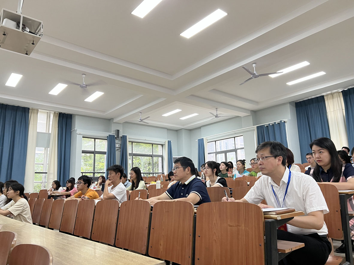 公司党委书记罗成翼深入教学现场查看了课堂教学秩序、教学设备设施运行等情况,并随机听取了青年教师刘霞任教的“马克思主义基本原理”课。“两性一度”专项座谈会在特立楼北208会议室召开。会上,太阳成集团tyc122cc经理陈明从教研教学、团队建设、科学研究、人才培养等方面汇报了公司推进“两性一度”工作的整体安排;太阳成集团tyc122cc副经理、党委副书记(主持工作)阮东彪汇报了公司学习贯彻关于“两性一度”的文件制度情况。副经理王竹苗从人才培养方案、课程大纲修订、课程建设、教学改革等方面汇报了公司具体落实“两性一度”工作的情况。公司党委副书记胡英汇报了毕业生就业指导、四六级工作、考研复习指导等工作。