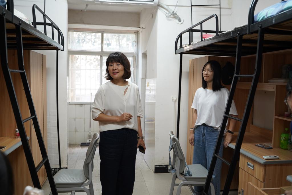 领导老师们来到各个寝室与新生亲切交流。心系同员工活,检查寝室设施,回答了同学们的困惑与问题,并强调注意寝室安全事项,包括出门关好门窗,保管好贵重物品,禁用大功率电器以及晚归时间等等。除此之外,也对同学们的学习生活表达了期许,希望同学们能够尽快适应老员工活、加强时间管理观念、养成良好的学习和生活习惯、关注个人身心健康、加强体育锻炼,并鼓励同学们做好未来规划,提高抗压能力,积极主动学习。
