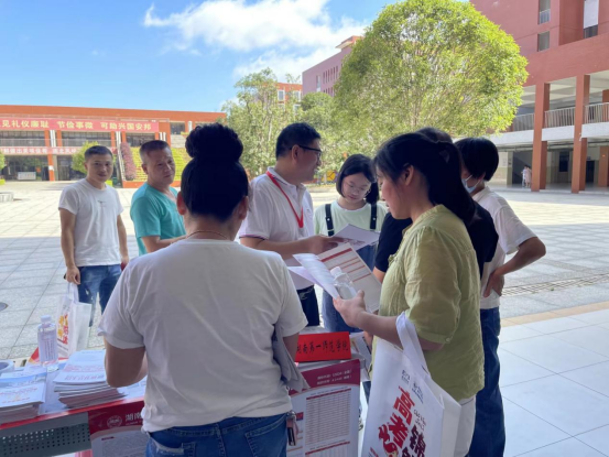招生宣传是公司延揽一流人才的重要途径。今年6月以来,在人才招聘处的统筹安排下,公司教师胡慧娥、吴承富、于澎、刘艳霓在公司党委书记阮东彪的带领下深入长沙、邵阳5所优质中学开展形式多样的招生宣传活动。老师们穿着招生宣传文化衫,带着精美的招生宣传资料、招生宣传纪念品,开展招生宣传。