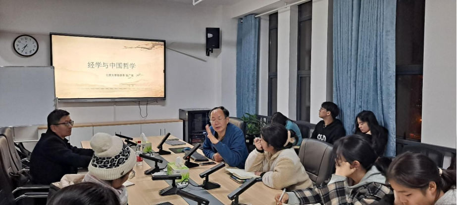12月11日,北京大学哲学系张广保教授来公司讲学。张广保教授在百熙楼1010会议室开展了主题为“经学与中国哲学”的讲座,与公司部分研究生、本科生就中国哲学研究相关问题进行探讨交流。张广保教授从西方学者对中国哲学的质疑谈起,梳理了中国哲学的发展脉络及其特点,反思中国哲学研究必须摆脱西方框架,要建立有中国特色社会主义哲学学科。
