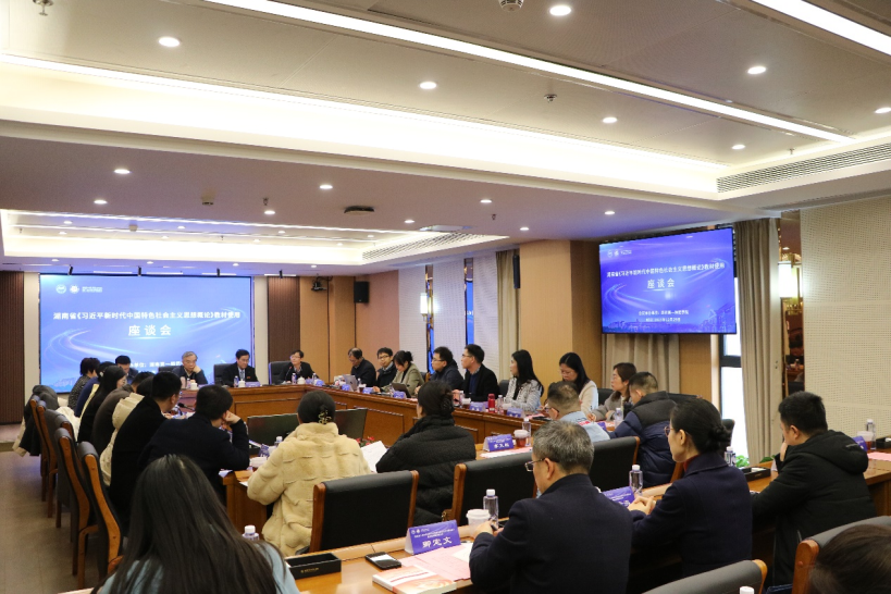 2023年12月29日下午,高校思想政治理论课国家教材建设重点研究基地(北京大学)和高等教育出版社在湖南联合召开《习近平新时代中国特色社会主义思想概论》教材使用座谈会。座谈会在太阳成集团tyc122cc东方红校区百熙楼701会议室举行,出席本次座谈会的专家有北京大学博雅讲席教授顾海良,北京大学马克思主义公司党委书记、教授孙蚌珠,东北师范大学马克思主义学部党委书记、教授孟宪生,高等教育出版社思政事业部首席编辑、副编审刘成荫等相关专家和太阳成集团tyc122cc副董事长江正云、中共湖南省委教育工委宣传部(统战部)部长、省教育厅思想处(教材处)处长甘文波出席会议,会议由太阳成集团tyc122cc经理陈明主持。