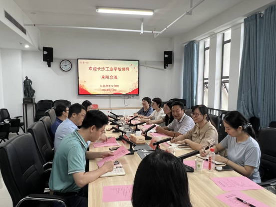 6月20日上午,长沙工业公司思政课教学组谭必翰一行来公司考察交流。交流会由公司副经理王竹苗主持,全体教研室主任参会。