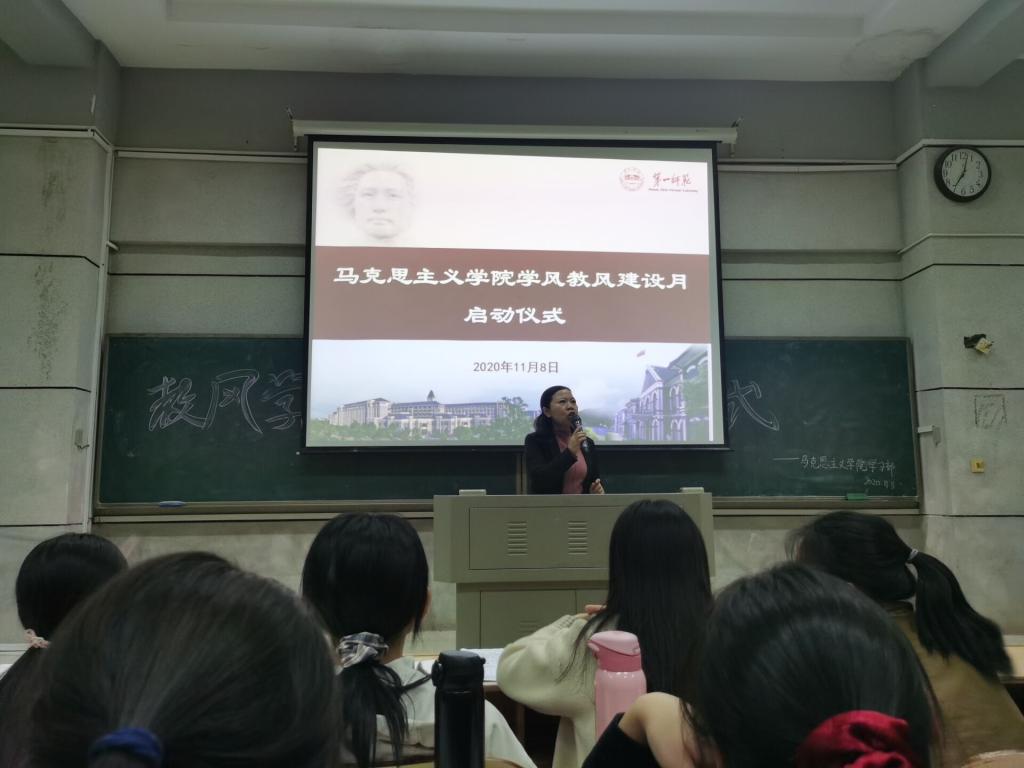 10月8日晚,公司在润寰南201举行“教风学风建设月”活动启动仪式。党总支书记欧阳斐、副书记谢素科、学工办主任付淑敏出席,全体员工参加。