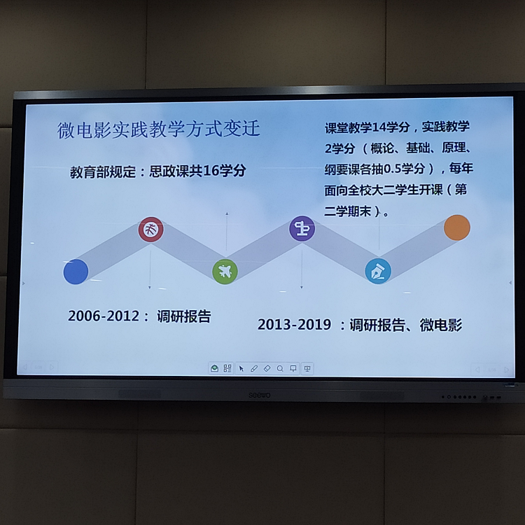 柴素芳教授以有奖竞答的方式拉开了讲座的序幕。本次讲座以“思政微电影构思与制作”为主线,分为五个部分进行讲解。一、提出“幸福由微电影打开”的理念,让思政课实践教学插上微电影的艺术翅膀;二、提出让员工以微电影的形式展示自己的学习报告,实践教学新方式;三、坚守初心确立改革定位,历经七年艰辛探索形成11349特色,一部影片点燃星星之火;四、“进”形成改革体系,四项要求确保改革质量,九多特色见证改革成果。她指出制作微电影一定要会推动故事情节,可通过旁白、人物前后的变化、刻画细节等方式推动故事情节;五、全面推进改革成果,4400部微电影已形成星火燎原之势。讲解期间向大家展示了自拍自导自演的河北大学思政教学阶段性成果——《幸福阳光》,此微电影是将幸福观融入思政教学的典范。她认为,教学需要创作的艺术,而将以微时长、微制作、微投资为显著优势和特点的微电影引入思政教学是对创作艺术的最美阐释。