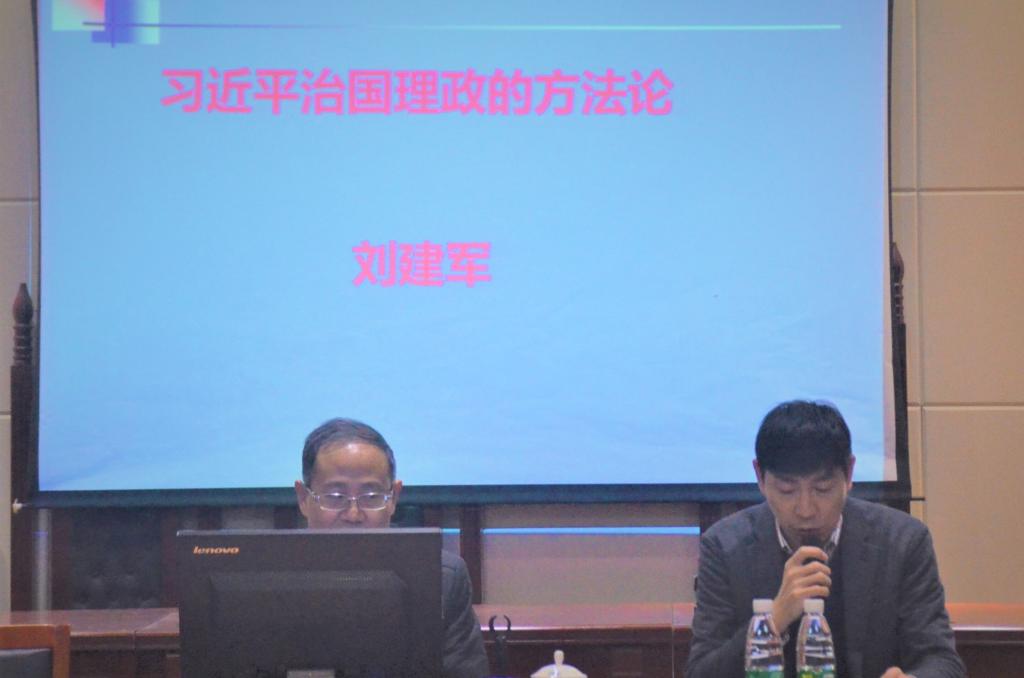 刘建军教授对此次能够来到公司举办讲座表示荣幸,语词之间毫不掩饰对第一师范的向往之情。刘教授提出,习近平新时代中国特色社会主义思想主要落实在实践上,对于实际生活十分重要,刘教授认为,习近平谈治国理政的方法论的基本特征具有三个新特点:在方法上,主体状态与方法运用相统一,重视使用方法的人的精神状态;在理论上,思想方法与工作方法相统一,注重理论和方法的融合,每一个方法,既是思想方法,又是工作方法;在战略上,注重战略思维与战术思维的统一。而在接下来的讲座中,刘教授给我们依次介绍了习近平谈治国理政方法论的基本方法和具体方法。