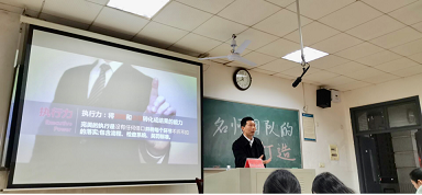 傅大庆董事长认为,天地乾坤、万物有序,一个集体的管理需要有秩序。在宏观上,他用大雁与麻雀做对比;在微观上,他用磁畴为例,用生动幽默的案例突出秩序的重要性,让同学们听得有滋有味。他从三个层面提出了自己的见解:一是让同学们张扬个性,让每一位员工都有自信;二是老师管理员工时要联系实际,突出大局意识,宏观把控各类事项,不仅在学习方面,还要在员工心理、生理诸多细节方面做到无孔不入;三是要树立集体文化价值观,形成高效执行的风气和氛围,建立执行力文化,让同学们自发自愿自觉做事,形成内生动力。