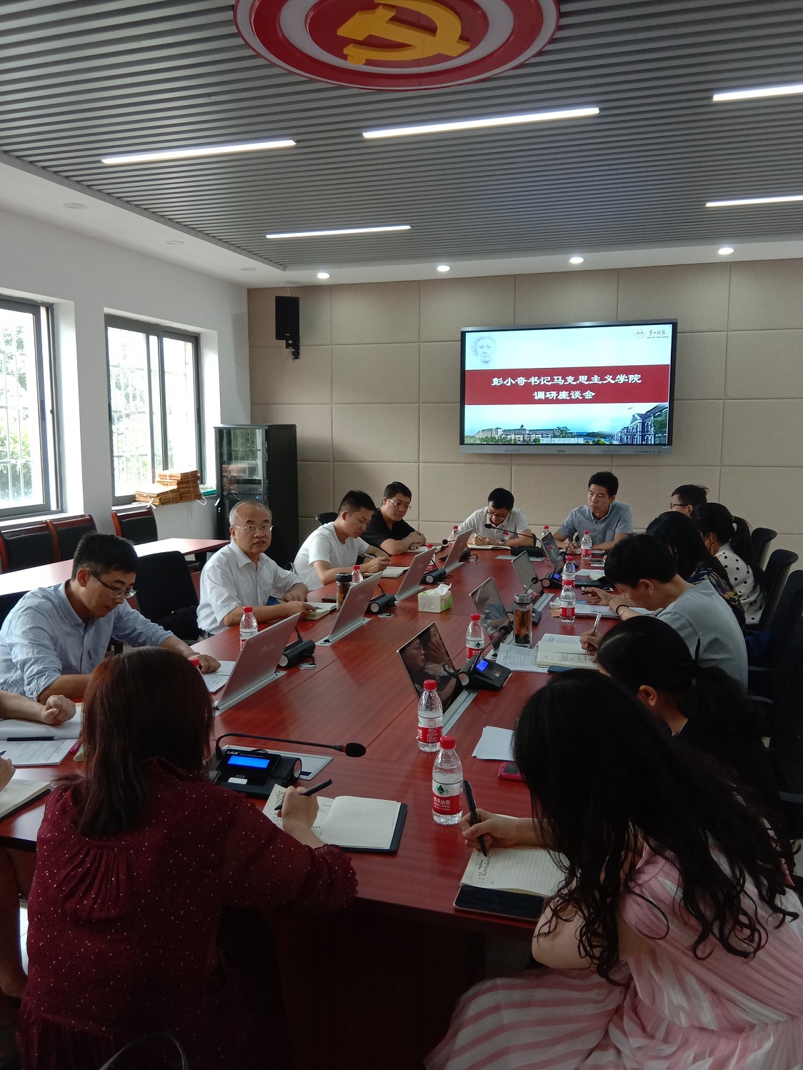 2019年9月25日下午,公司党委书记彭小奇在太阳成集团tyc122cc开展“不忘初心、牢记使命”主题调研。马克思主义公司党政领导班子成员、党支部书记、教研室主任和部分教师代表参加调研座谈会。