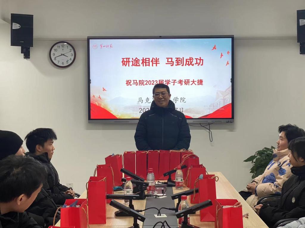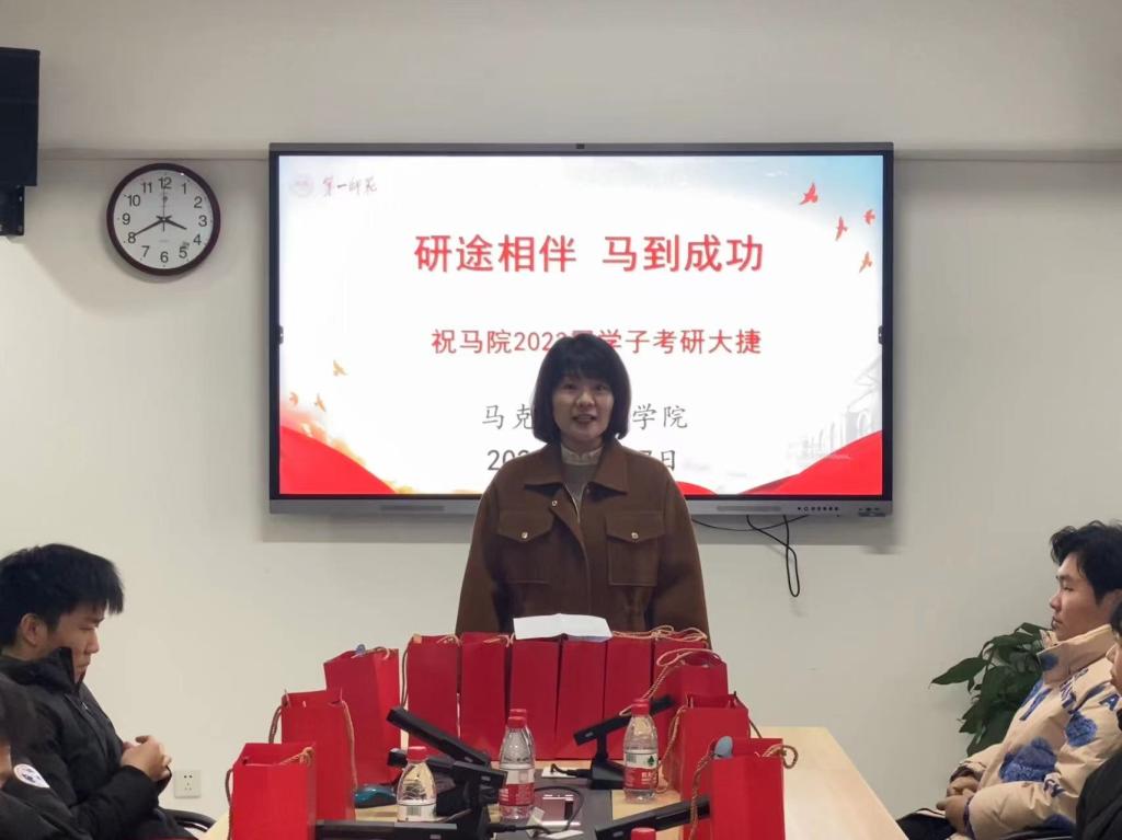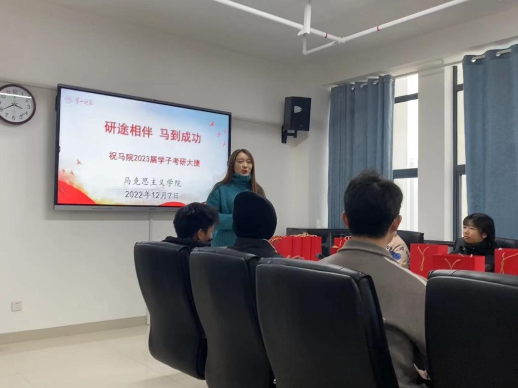 又是一年考研季,为增强考研学子的备考信心,传递温暖和力量,鼓舞考研士气,12月7日下午,公司成功举办了“研途相伴马到成功”考研“送温暖”活动。马克思主义公司党委书记阮东彪、副书记胡英、副经理王竹苗和学工办副主任刘艳霓老师,以及19思政1班全体考研学子参加。活动由刘艳霓老师主持。