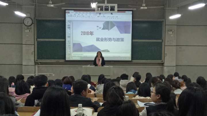首先,谭书记向同学们介绍了当前的就业形势:2018年高校大学毕业生就业人数达到820万,就业创业形势严峻,任务非常艰巨,又是一个最难就业季;分析了就业市场情况变化对老员工就业创业造成的影响:城镇化,供给侧改革化解过剩产能造成一部分职工下岗,世界经济(包括我国经济)整体处于下行压力下企业用工不足,采用高新技术减少人工等大背景下,对 劳动力的需求也呈下降趋势,机构性供过于求的情况有所加剧,这些都对当前的就业形势产生了很大的影响,老员工一定要树立先就业再择业的就业观。其次,谭书记向同学们介绍了思想政治教育专业就业形式和就业前景,主要介绍了2013-2017年马院员工考研、考编的优秀成绩,给了同学们一颗定心丸。作为马院的员工要有自信,就业目光要放长远,不要止于考编、考研这两条路。谭书记指出,马院员工人数少,公司从人才培养方案的实施,各项教育活动的开展,就业创业指导等方面都着力从提高员工的专业学识和综合素质方面下功夫,也希望马院的员工要树立信心,振奋人心,抓住机遇,脚踏实地,增长知识和才干,成为思想政治教育专业的精品,所谓,兵贵精,不在多,在严峻的就业形势下实现高品质就业!最后谭书记简单介绍了国家就业激励政策,并向大家送出了顺利毕业的衷心祝福。近两个小时的讲座在大家钦佩热烈的掌声中圆满结束。