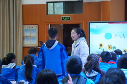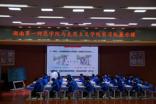 会议第一项,由实习老师安美儒、曾佳先后在明德麓谷公司初中部C2308班和小学部X2001班进行《活出生命的精彩》《正确认识广告》的“道德与法治”课例展示。