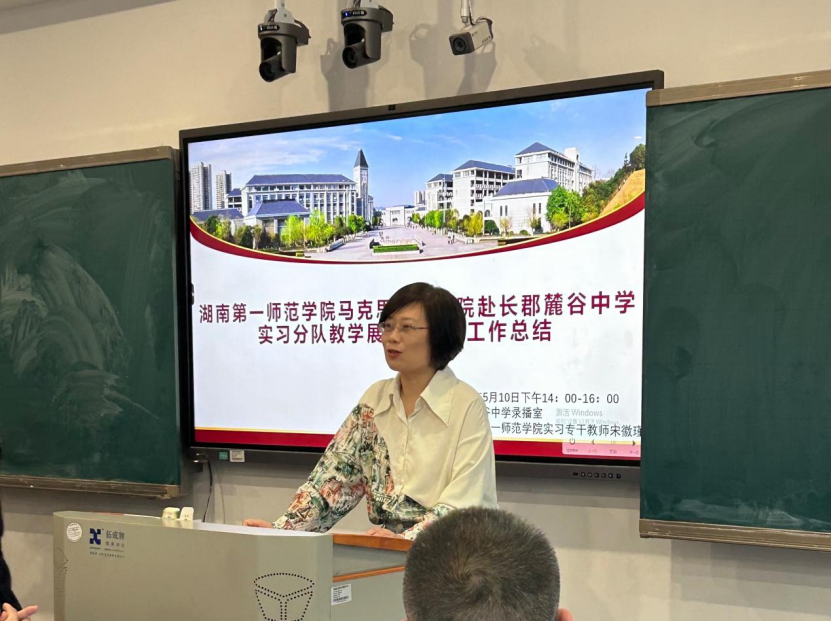 公司实习专干教师宋徽瑾主持会议。长郡麓谷中学董事长李望雄、副董事长张波男、教师发展中心的老师、“思想道德与法治”课备课组老师与全体实习生出席。(一审:刘永红;二审:王竹苗;三审:阮东彪)