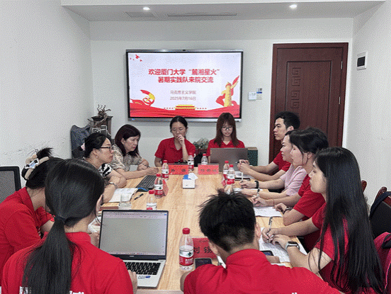 7月16日上午9:00,厦门大学“鹭湘星火”暑期实践队一行9人,在苗瑞丹教授带领下来公司开展实地调研座谈。交流会由公司副经理胡慧娥主持,中国近现代史纲要课教研室主任张晓燕、班主任代表吴红等参会。厦门大学“鹭湘星火”暑期实践队骨干成员包括2名博士、2名硕士和4名本科生。