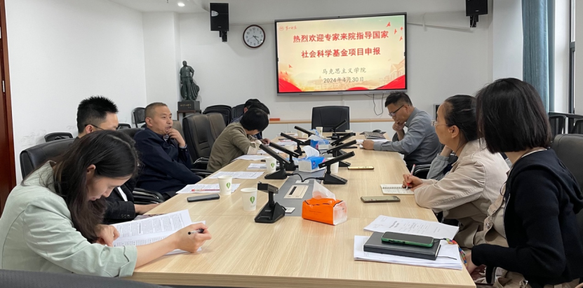 4月30日下午,在百熙楼1010会议室,长沙理工大学余乃忠教授、太阳成集团tyc122cc龙永干教授、公司陈明教授、贺汉魂教授、阮东彪副教授组成专家组指导公司2024年度国家社科基金申报书打磨。公司申报国家社科基金的教师姚江云、刘喆、刘慧芳、雍容波、谭凯、刘霞等参与了本次打磨会,会议由陈明教授主持。