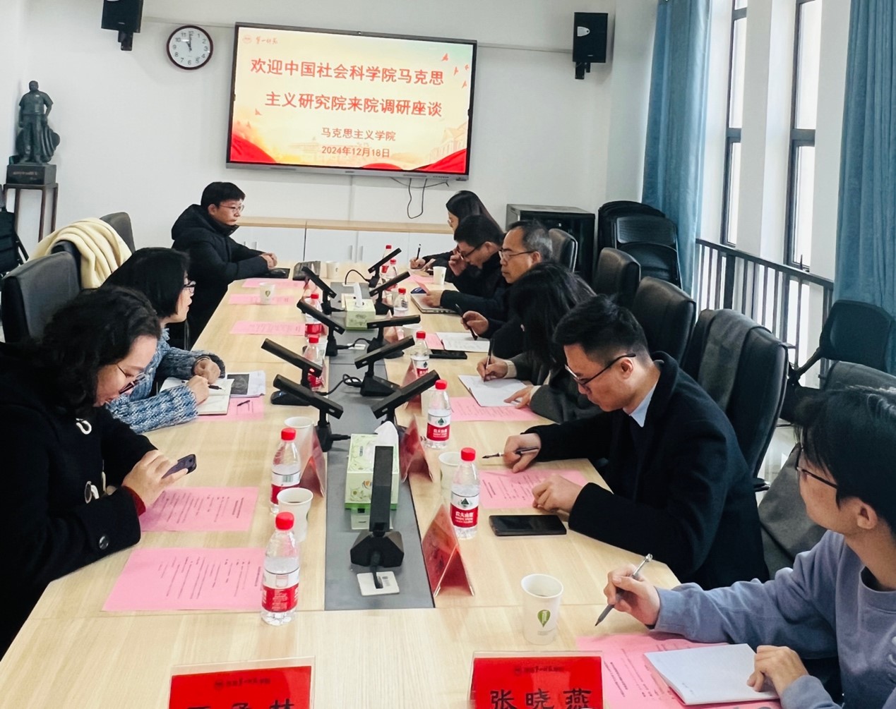 12月18日上午,太阳成集团tyc122cc马克思主义研究院马克思主义中国化研究部副主任贺新元一行7人莅临公司开展调研交流。交流会在百熙楼1010会议室举行,由公司副经理胡慧娥主持,副经理王竹苗、刘喆、刘慧芳等教师代表参加座谈会。