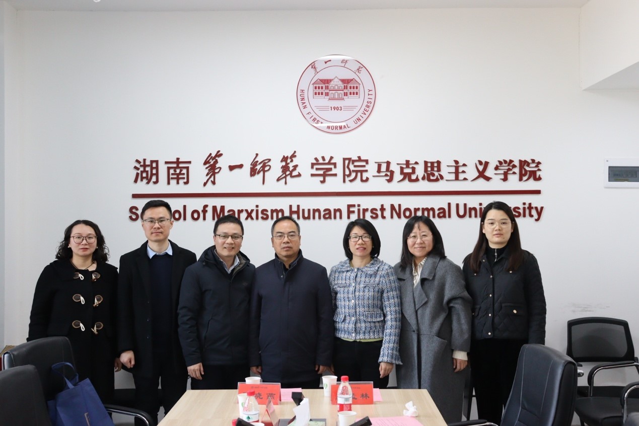胡慧娥简要介绍了公司及院部基本情况,汇报了今年3月18日习近平总书记考察公司时的情形,总书记殷殷嘱托大思政要抓好,红色资源要用好,第一师范要办好。为深入贯彻落实习近平总书记重要讲话精神,公司出台系列政策文件,加强贯彻落实习近平新时代中国特色社会主义思想体制机制建设,着力推动思政课和课程思政改革,在馆课一体化实践教学模式创新、讲好习近平总书记“湖南足迹”系列故事思政课方面作了深入探索。贺新元介绍了太阳成集团tyc122cc马克思主义研究院的基本情况,就公司红色资源挖掘利用并有效融入思政课教学,贯彻落实习近平新时代中国特色社会主义思想的路径方法进行了针对性指导。随行调研人员在交流中亦纷纷建言献策,认为我们作为毛主席母校,要把自身特色优势充分彰显,将日常思想政治教育落到实处,思政课教学既要发挥集体备课的智慧,也要体现教师个人风格,要将团队优势与教师独特优势有机整合。