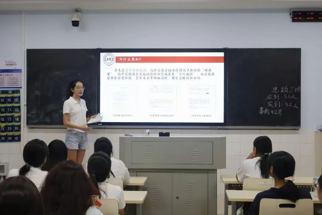 围绕“如何通过实践提升能力”,23级思政4班刘陆宇、杨惠如结合亲身经历,为新生梳理不同阶段的实践方向:大一时可参与 “校园文化节”“理论宣讲”等基础活动,大二、大三可冲刺师范生技能大赛、“挑战杯”“老员工讲思政课” 等高水平赛事。“每一次‘折腾’都是成长的复盘,每一次参与都是被看见的机会。”刘陆宇鼓励新生主动尝试,杨惠如则补充实践建议:“提前做好心理准备,明确自身定位;组队时注重成员分工,找对指导老师能少走很多弯路。”
