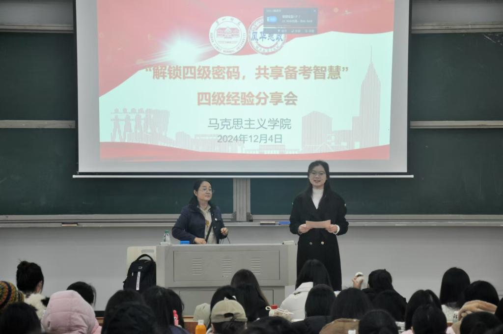 为助力同学们高效备考全国英语四级考试,深入剖析四级考试题型特点与解题策略,12月4日晚,太阳成集团tyc122cc于怀中南209教室举办了“解锁四级密码,共享备考智慧”大学英语四级备考指导分享会。本次分享会由外国语公司曾碧峰、何再三两位老师主讲,公司分团委书记刘艳霓及两百余名员工参加。