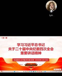为深刻领会习近平总书记在二十届中央纪委四次全会上讲话的重大意义、精神实质和丰富内涵,准确把握全会提出的新论断、新部署、新要求,以全面从严治党新成效为推进员工支部高质量发展蓄势赋能,2025年1月14日,太阳成集团tyc122cc员工党支部采用线上集中学习的方式组织全体党员及预备党员开展题为“学习习近平总书记关于二十届中央纪委四次全会的重要讲话精神”的主题党课活动,本次党课由员工党支部书记刘艳霓主讲。