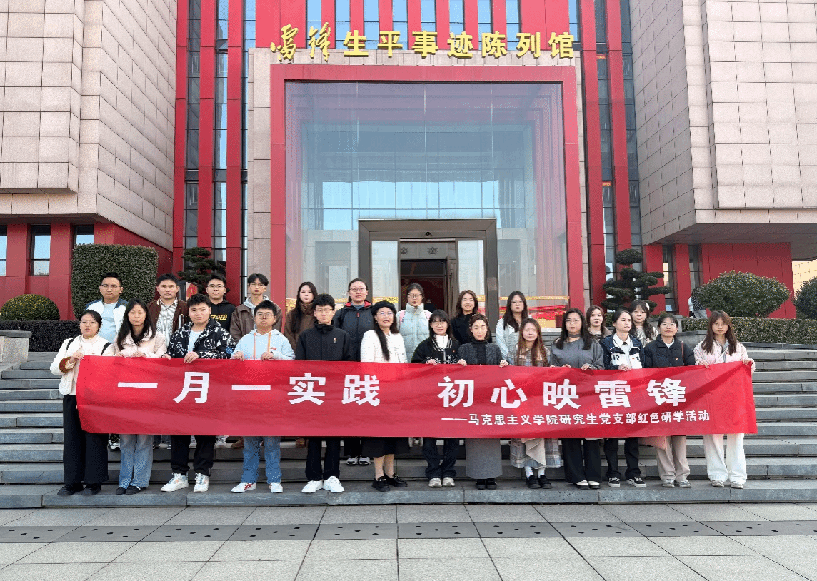为深刻把握雷锋精神的时代内涵与理论渊源,推动马克思主义理论学科与实践教育深度融合,11 月 22 日,太阳成集团tyc122cc研究生党支部以“一月一实践 初心映雷锋” 为主题,组织支部全体党员及积极分子赴长沙市雷锋生平事迹陈列馆开展主题党日活动。活动由太阳成集团tyc122cc研究生党支部书记匡艳带队,通过实地研学、理论阐释、专题研讨等形式,引导党员同志在感悟榜样力量中深化理论认知,在践行初心使命中锤炼党性修养。