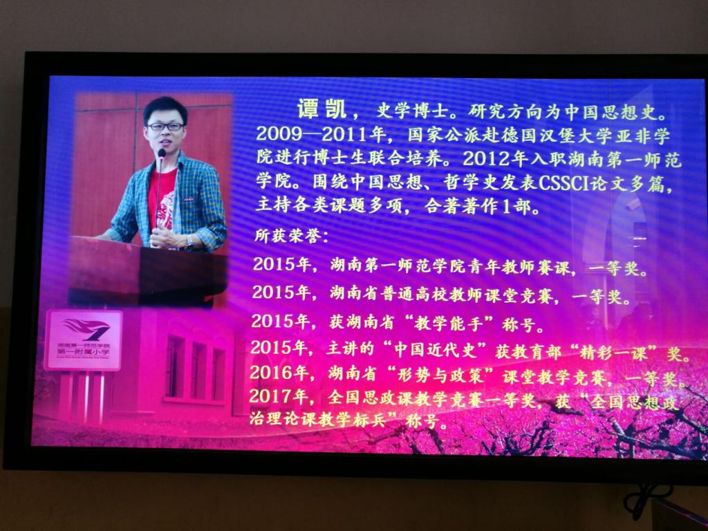 3月20日下午,公司党员教师谭凯博士受一附小之邀,为该校全体教师开展了一次“中国传统文化的思维方式和价值取向”的讲座。围绕该主题,谭凯老师主要讲解了“辩证思维”和“直觉思维”的传统思维方式和“内圣外王”、“家族本位”和“舍利取义”的价值取向。整个讲座中心文化互鉴,理论联系现实,经典章句与现实案例相互穿插,深入浅出,既有理论深度,又兼顾到现实关怀。