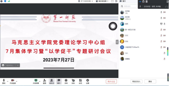 7月27日,公司党委理论学习中心组开展7月集体学习,聚焦“以学促干”这一主题进行专题研讨。公司党委书记阮东彪主持并总结讲话。公司党委委员、教师党支部书记出席,本次研讨采取线上与线下相结合的方式进行。