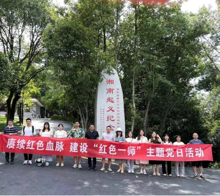 为学习贯彻习近平新时代中国特色社会主义思想主题教育,缅怀革命先烈,传承红色基因,更好地锤炼党性,发挥党员先锋模范作用,2023年8月15-19日,公司师生代表在马克思主义公司党委书记阮东彪带领下,在郴州市汝城县沙洲村、桂东县沙田镇、衡阳市衡东县荣桓镇开展“赓续红色血脉 建设红色一师”主题党日活动,以实地考察与理论研讨相结合的学习方式追寻红色足迹,传承红色精神,努力在以学铸魂、以学增智、以学正风、以学促干上取得实实在在的成效。
