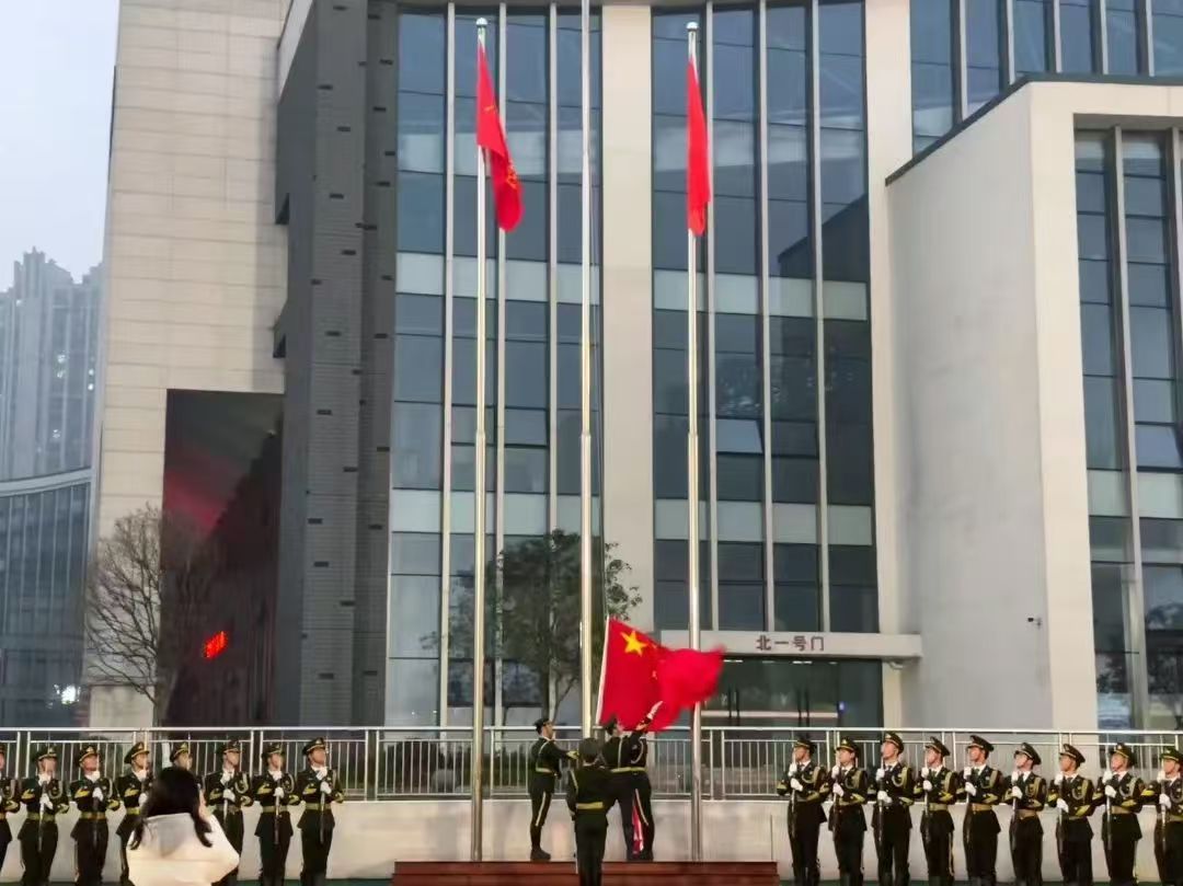 2月17日清晨7点,2025年春季学期第一周升旗仪式于东方红校区田径场盛大举行。校员工工作部部长周大庆、副部长李翔、副部长禹晗,马克思主义公司党委书记曾玉华、副经理王竹苗、副经理胡慧娥、正处级组织员何文出席,各二级公司辅导员以及约1000名员工代表共同参与了此次仪式。仪式由马克思主义公司党委副书记胡英主持。