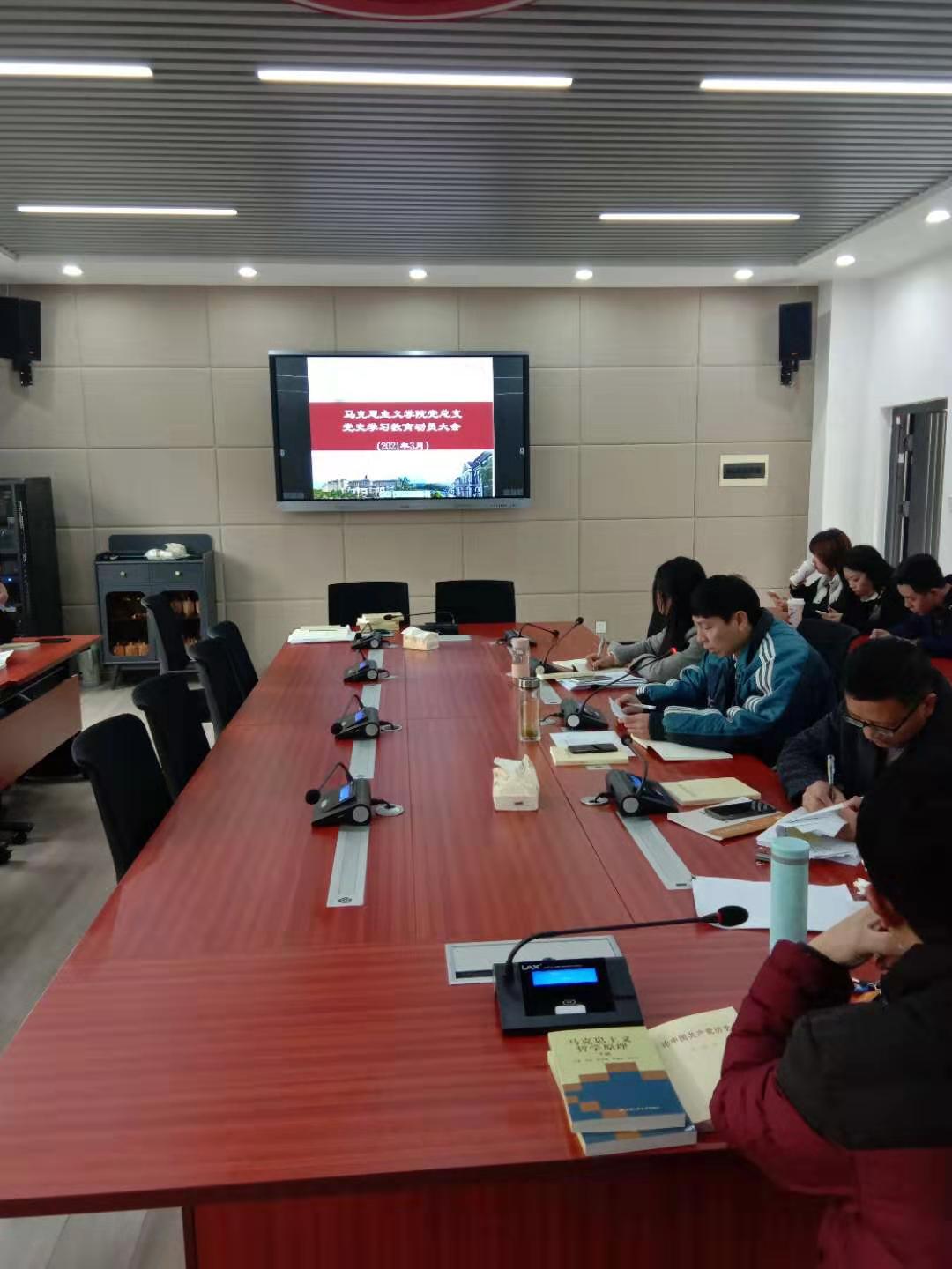 3月23日下午,马克思主义公司党总支在润寰楼北栋205会议室召开党史学习教育动员大会,深入学习贯彻习近平总书记在党史学习教育动员大会上的重要讲话精神,传达公司党史学习教育动员大会精神,并对公司开展党史学习教育进行动员部署。会议由公司党总支书记欧阳斐主持。公司党政班子成员及全体教职工参加了会议。