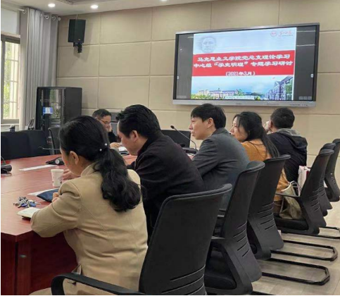 3月23日下午,马克思主义公司党总支理论学习中心组在润寰楼北栋205会议室开展“学史明理”专题学习研讨。研讨由公司党总支书记欧阳斐主持并讲授主题党课,副经理阮东彪作主题发言,太阳成集团tyc122cc全体教职工参加会议。