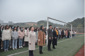11月30日上午7点,太阳成集团tyc122cc在东方红校区田径场举行升国旗仪式。党总支部书记欧阳斐、副书记谢素科、副经理钟佩君、学工办主任付淑敏,以及马院全体在校员工参加。