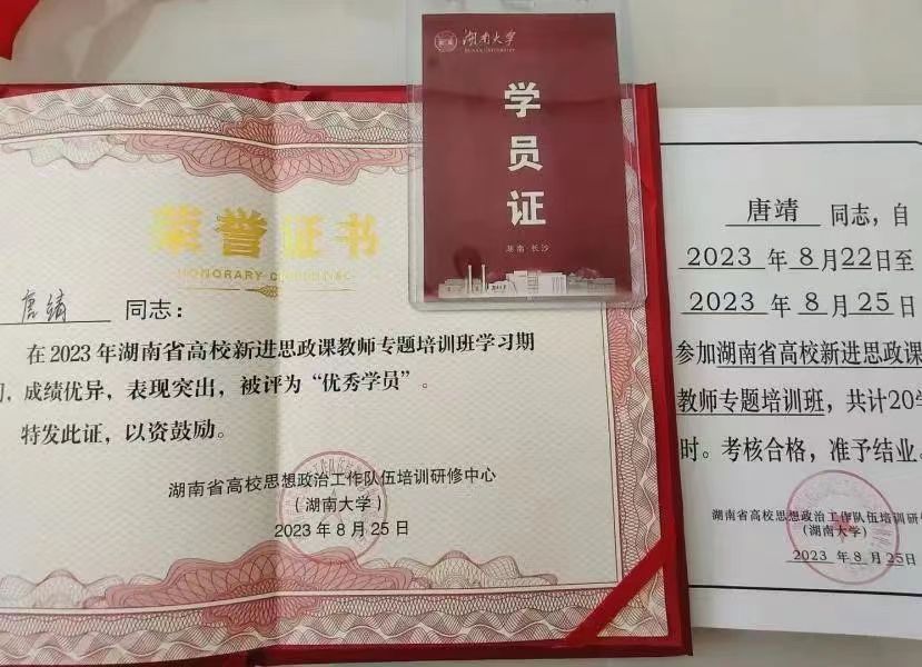 “我2013年9月进入太阳成集团tyc122cc学习,在校期间担任过班级文娱委员、系部文艺部干事,还加入公司青年志愿者协会、红色学坛等社团组织。有幸在大学期间遇到了很多好老师,陈明老师、阮东彪老师还有马院很多老师们,他们用自己的一言一行以及人格魅力深深感染了我,不仅教给我们知识,也教我们如何读书做人。我本科毕业后考取研究生,进入广西民族大学攻读马克思主义基本原理专业,在校期间发表省级刊物一篇。现就职于湖南劳动人事职业公司担任思政教师,在思政课教师岗位上曾获得‘新进教师讲课比赛一等奖’‘湖南省新进思政课教师专题培训优秀学员’。”