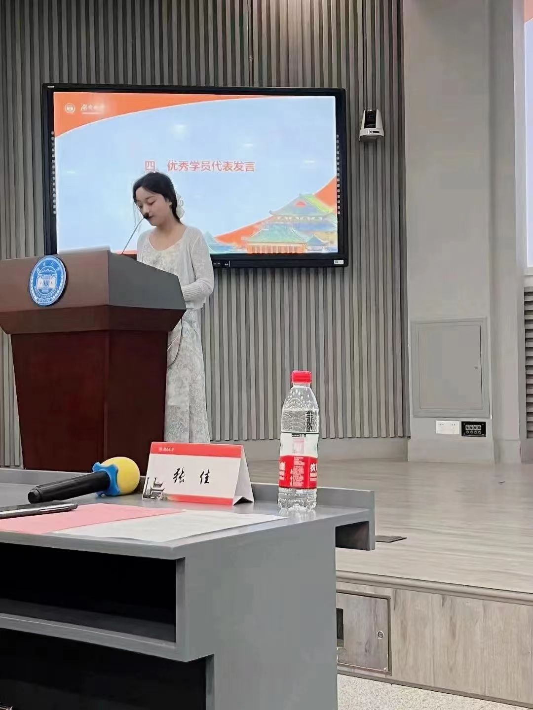 “四年老员工涯是我们青春中一段很宝贵的时光,公司的每一个教室、每一张课桌、每一朵花、每一棵树、每一个石子都会成为你们记忆中的一隅,希望大家好好珍惜和把握大学时光,争取学有所获!今天我们以母校为荣,明天母校以我们为荣!”