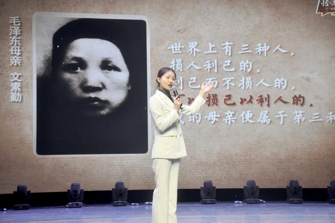12月11日晚,2019届优秀毕业生邹佳文重返母校,在田汉剧院为青年学子带来一场主题为“恰是风华正茂,我的韶山行”的思政讲座。讲座以生动叙事串联红色记忆,用深刻感悟传递使命担当,带领学弟学妹穿越时空对话革命先辈,探寻毛泽东同志的成长足迹,共话当代青年的理想与责任,现场反响热烈。