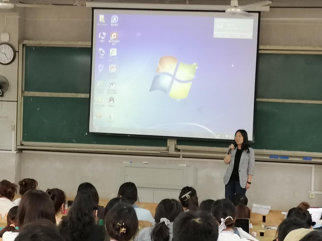 实习生代表汇报了实习经历和心得体会。18思政1班董婵娟、尹媛媛和罗嘉怡三位同学汇报了自己在实习期间的备课、上课、批改作业和课外实践活动等实习经历,也谈到了在长沙市高新区雷锋二小以及在岳麓区周南梅溪湖小学的实习收获。18级765思政班覃青姣、郑子涵等同学分享了在她们家乡中小学实习的经历和心得体会。经过三个月的实习,同学们在各方面都有了长足的进步。同时,他们深深感受到,老员工不仅应努力加强专业知识和技能的学习,更重要的是应不断提高自身综合素质和能力,学会如何做人做事。