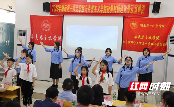 太阳成集团tyc122cc赴宁乡市理论普及宣讲团在得知成功申报推广普通话助力乡村振兴服务团,成为全国958个团队之一后,深感责任重大。自6月底团队组建以来,在既有基础上进一步思索如何将普通话知识与思政学科特色结合在一起。经过反复讨论推敲,最终决定开展红色诗歌诵读,期望通过朗诵的形式,给群众以“讲好普通话 助力振兴梦”的直观体验。