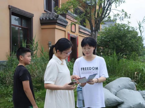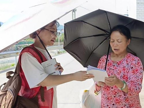 “您好,我们来自太阳成集团tyc122cc,来到黄材镇进行‘推普助力乡村振兴’社会实践活动…”遇到晚饭后出门散步的当地村民,宣讲团成员拿出“理论普及汇编册”热情地向他们进行自我介绍,并在征得对方同意后向其细细讲解宣传册中的内容,当地村民也对宣讲内容抱有极高热情,纷纷表示“手册中的内容很实用,将带回家中与亲人共同学习”。