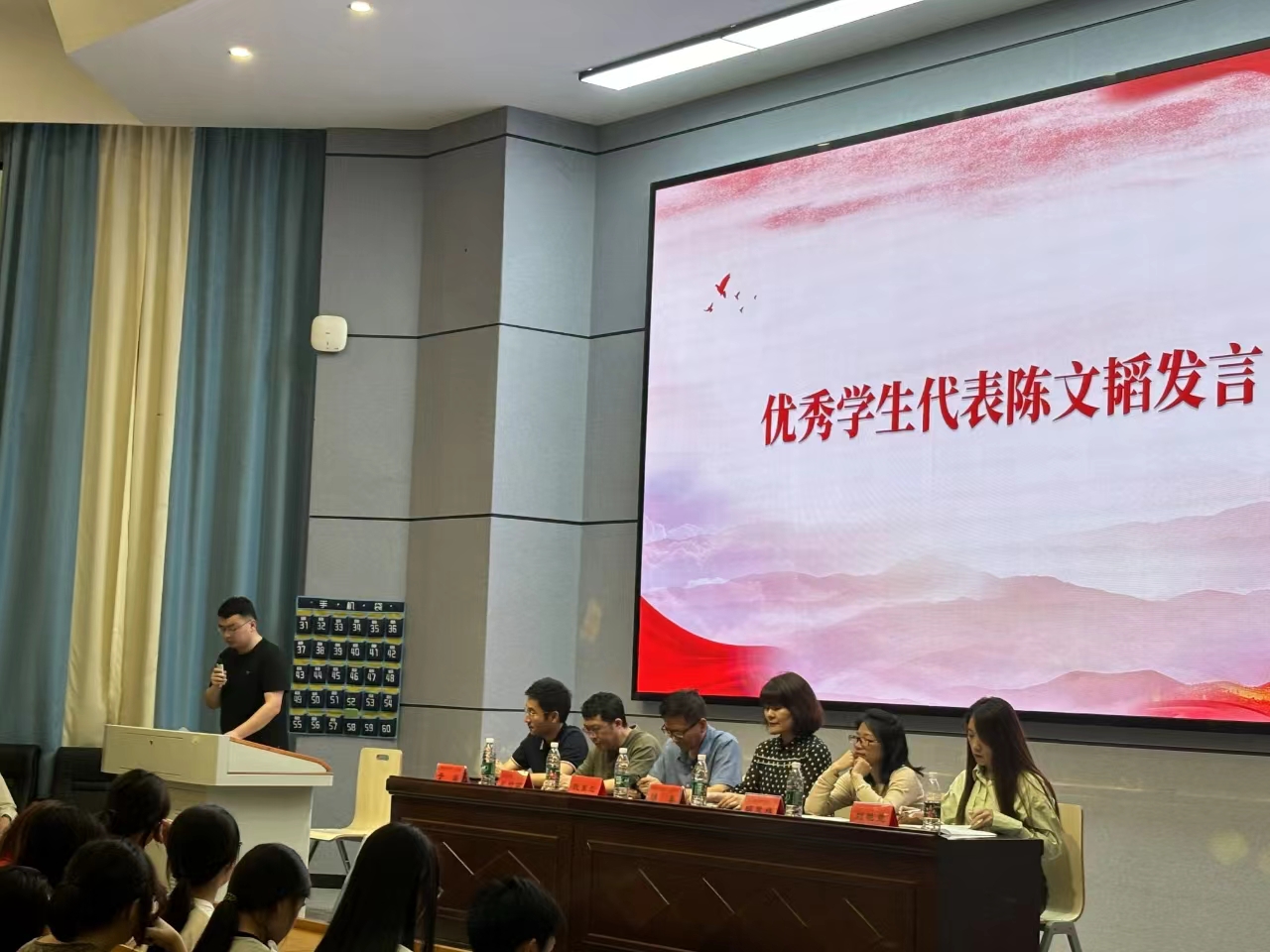 乘风破浪潮头立,扬帆起航正当时。5月13日晚,公司“砥砺奋进•追光而行”优秀员工表彰大会暨先进事迹分享会在怀中南110报告厅举行,公司党委书记阮东彪、党委副书记胡英、副经理王竹苗、副经理胡慧娥、学工办主任于澎以及分团委书记刘艳霓出席,2022级、2023级共300余名同学在场参加活动。