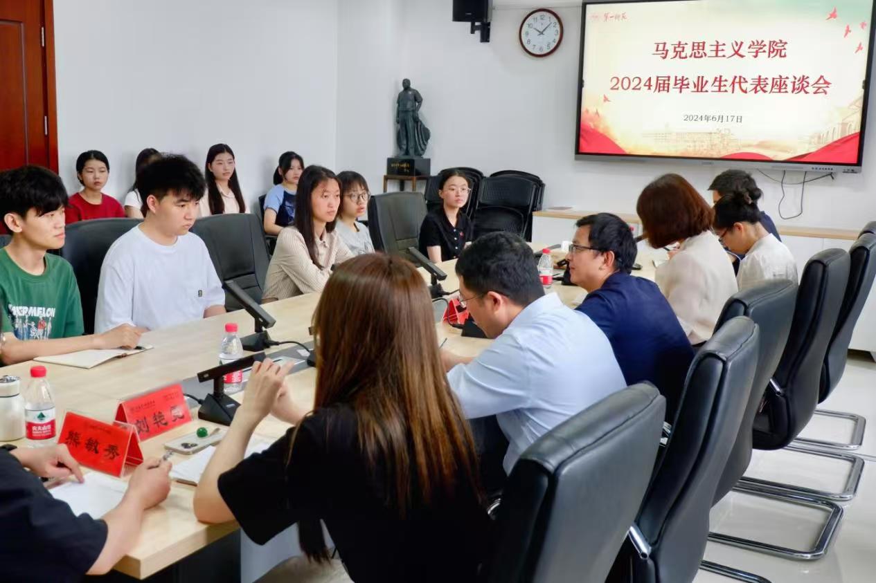 会议伊始,经理陈明首先深情回顾了一师的发展历史,他感慨地说:“一师马院见证了无数青年学子的成长与蜕变,也承载着我们的光荣与梦想。”随后,陈经理向即将离开母校的毕业生们送上了诚挚的祝福:“祝愿你们前程似锦,工作顺利,人生圆满幸福。”他鼓励毕业生们要铭记第一师范的教育和荣光,以坚定的意志和务实的态度,做好每一份工作,用长远的眼光看待人生。随后,毕业生代表依次发言,从不同的角度分享他们在学习、实践、活动以及个人成长等方面的经历与感悟。蔡雯萱是湖南省优秀毕业生,已成功上岸湖南大学硕士研究生,她格外感谢公司的栽培,尤其是公司领导老师在考研管理服务方面给予的引导、支持和关怀。转专业来马院求学的胡友唯表示“完全不后悔当初的决定”,她在公司老师的帮助和鼓励下,脚踏实地、刻苦钻研,成功上岸华中师范大学硕士研究生,未来她将不忘初心去到祖国最需要的地方,去创造并实现自己的人生价值。紧接着,领导老师们纷纷表达了对毕业生的嘱托和祝福。胡英书记细数与同学们相处的点滴回忆,她表示:“你们既是一师马院成长发展的见证者,也是建设者和参与者,对此我深感骄傲和欣慰。”对于考研深造的员工,她期望学子们能永葆初心,在学术研究的道路上继续勇攀高峰;对于即将步入社会的员工,则希望他们时刻牢记校训精神,为教育事业添砖加瓦。王竹苗经理则提出了三点期盼:一是要传承第一师范的优良传统,学会欣赏和尊重他人;二是要追求卓越,以更高的标准要求自己,为未来的成就奠定坚实基础;三是要劳逸结合,关注身心健康,保持积极向上的心态。谢玮老师、刘艳霓老师和熊敏秀老师也一一表达了对毕业生们的真挚祝福和殷切期望,鼓励同学们要有不畏困难的勇气,勇敢面对末来的挑战。最后,由阮东彪书记对本次座谈会进行总结发言。阮书记向毕业生表示祝贺,嘱托大家要牢记“要做人民的先生,先做人民的员工”的校训,秉承“实事求是”的校风,将马克思主义的精髓内化于心。他强调,同学们要深入学习贯彻习近平总书记重要讲话精神,立报国强国大志向;要坚持终生学习,不断拓展人生发展空间。阮书记表示同学们传达的真情和建设性的意见公司都已收到,欢迎同学们常回家看看。
