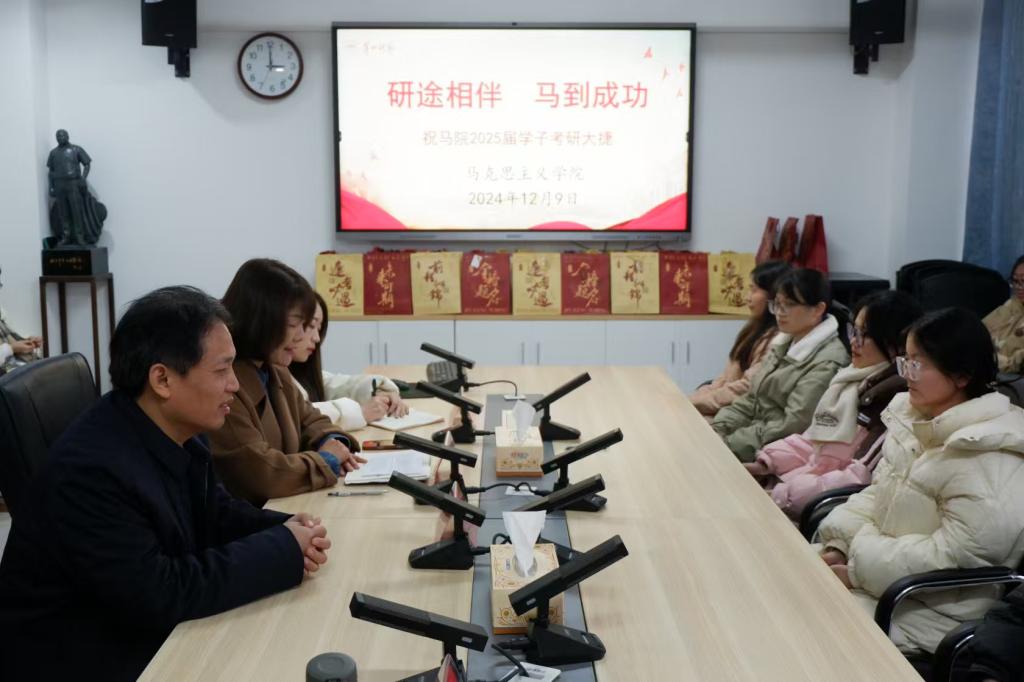 会上,曾玉华书记首先对考研学子们的辛勤付出和不懈努力给予了充分的肯定,他相信,凭借同学们的坚韧与毅力,一定能够在考研的道路上克服重重困难,取得优异的成绩。同时,他也殷切地叮嘱同学们:“在冲刺阶段,要学会调整心态,保持张弛有度,科学合理地规划复习时间,注重身心健康,以最佳的状态迎接考研的挑战。”