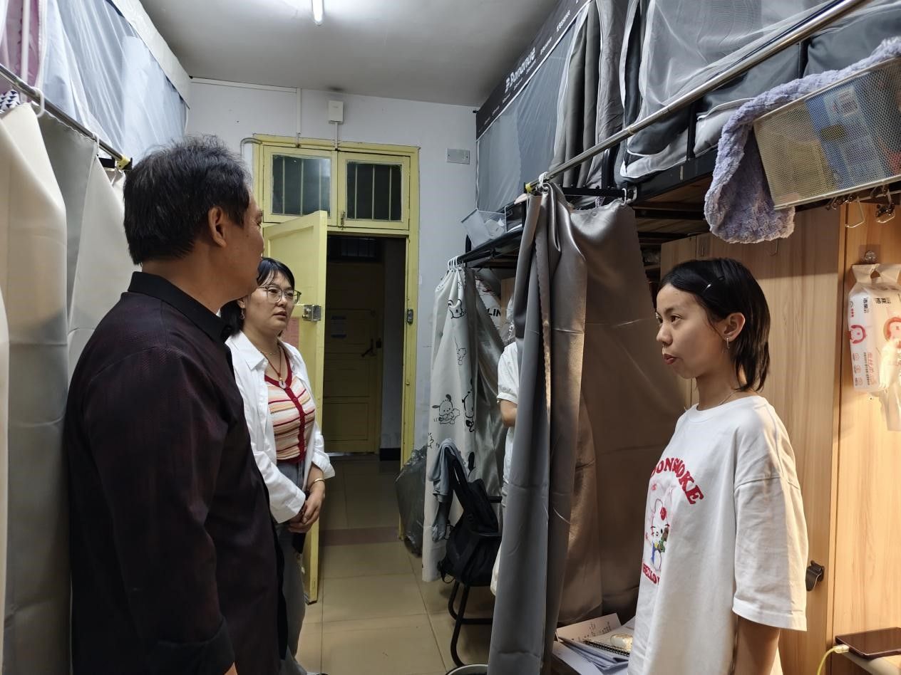 9月19日,马克思主义公司党委书记曾玉华带领辅导员高爱枝深入员工宿舍开展走访工作。走访中,曾玉华书记与高爱枝老师重点查看宿舍内务整理情况,督促同学们保持个人与宿舍环境卫生整洁,爱护公共设施,共同打造文明、舒适的住宿环境。同时,还与新生亲切交流,细致了解其入学后的生活适应、学习规划等情况,并提供贴心指引。(一审:刘艳霓 二审:胡英 三审:曾玉华)