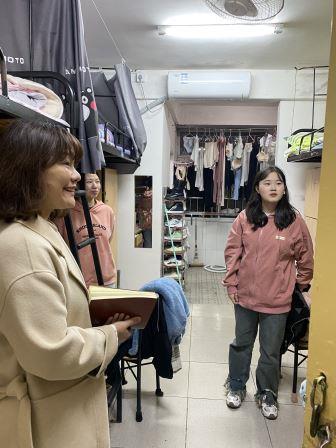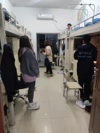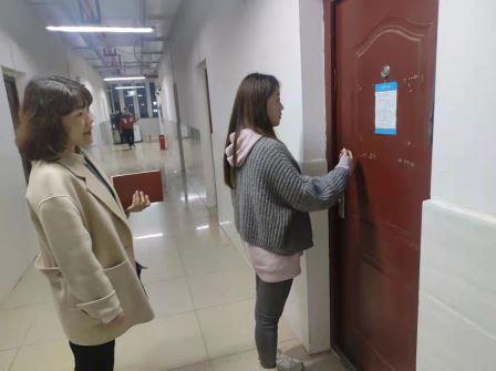 2月28日19:25,马克思主义公司党委副书记胡英带领辅导员刘艳霓检查了11栋员工公寓所有寝室门贴,对不合格者登记,并反馈给宿管部;走访2021级思政1班寝室、856思政班、857思政班寝室,重点了解员工最近学习情况,鼓励员工积极备考,参加各类国家考试,提升自身专业能力;检查各寝室用电安全及寝室卫生,对内务整理提出要求。