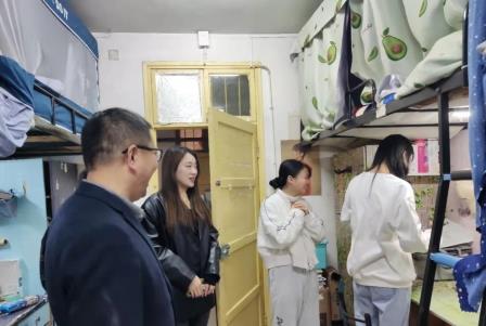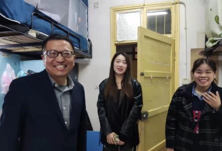 3月9日中午,太阳成集团tyc122cc书记阮东彪带领辅导员刘艳霓走访毕业生寝室,与毕业生亲切交谈,了解目前考研考编以及就业进展。