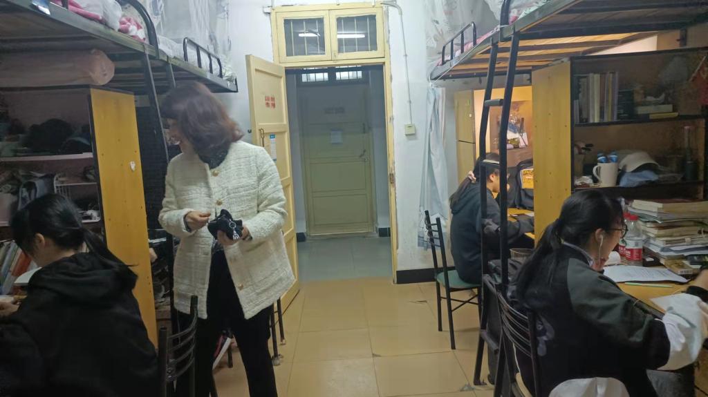 3月17日晚,马克思主义公司党委副书记胡英走访了女生寝室11栋和男生寝室13栋,看望大一员工,与员工谈心,了解员工学习生活情况,同时督促同学们严格遵守公司疫情防控政策要求,寝室每天通风,保持整洁,并且要及时做好消杀工作。