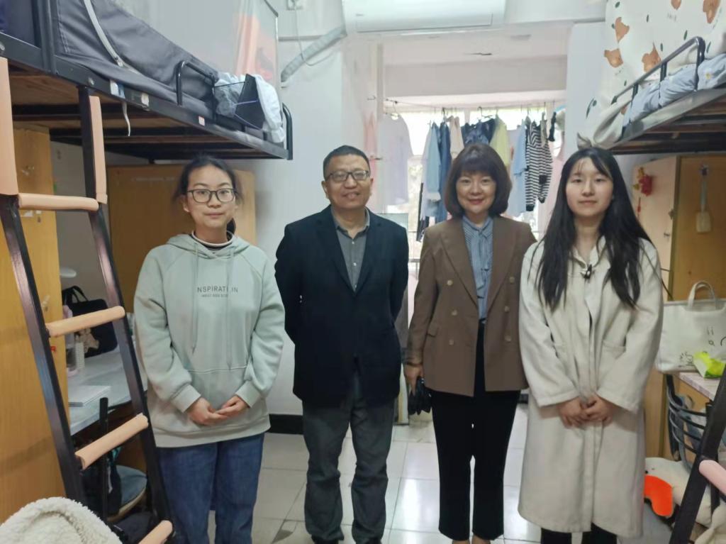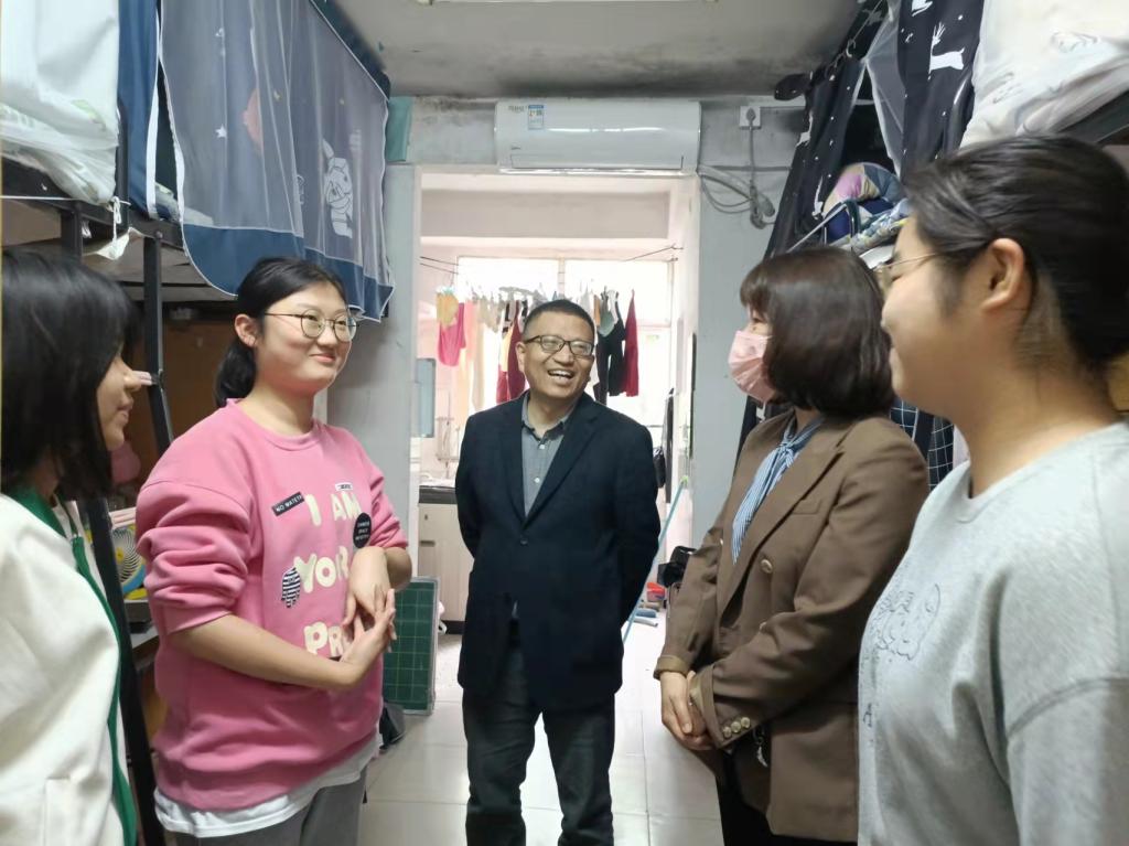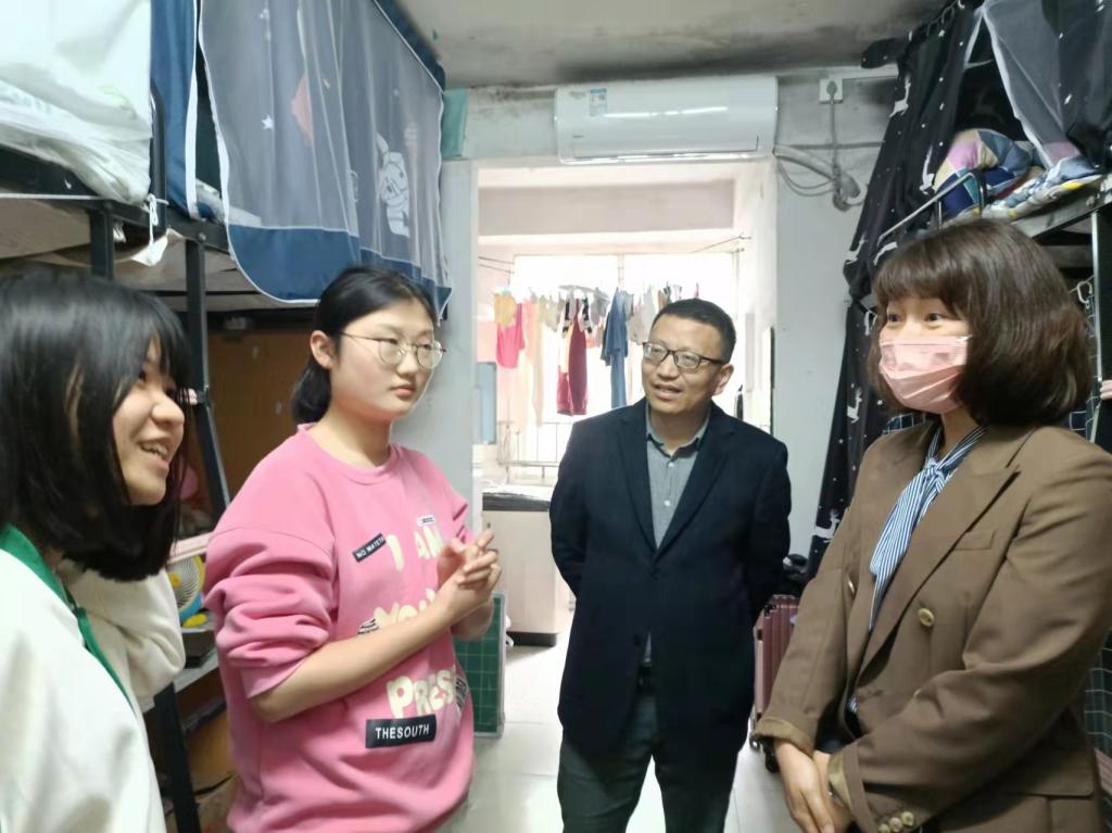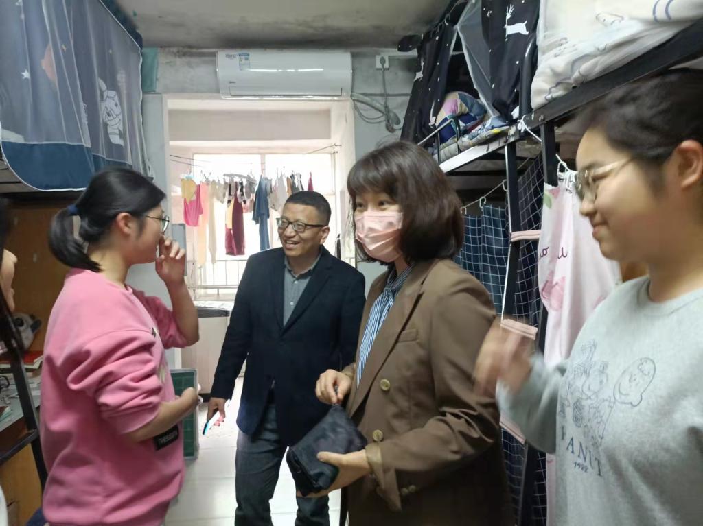 4月29日下午,马克思主义公司党委书记阮东彪、党委副书记胡英、学工办刘艳霓走访了11栋员工宿舍。与同学们亲切交谈,就学业情况进行了深入交流,鼓励同学们勤勤恳恳地学习好专业基本知识,扎扎实实地掌握好教学实践技能,多多参与各类技能竞赛与活动,不断提升自己,同时在此基础上也要切实保证自身作息时间与饮食规律,劳逸结合,要走出宿舍、走进操场,积极进行体育锻炼。