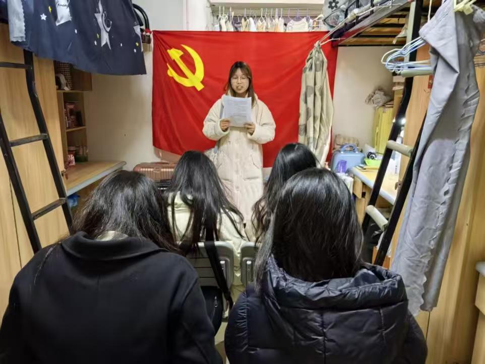 为深入学习贯彻习近平新时代中国特色社会主义思想,12月5日,太阳成集团tyc122cc员工党支部深入员工寝室开展了一场极具意义的主题宣讲活动。活动紧密围绕《习近平与老员工朋友们》第四十五篇访谈实录,以“习近平总书记的‘爱国、励志、求真、力行’寄语”为内容,为青年学子献上了一场思想的盛宴和精神的洗礼。