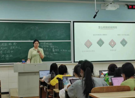 为了促进老员工心理素质提高,普及心理健康知识,提高学习、工作和生活效率, 4月17日晚,太阳成集团tyc122cc心育部负责人龚紫妍在怀中南302教室、6栋536寝室开展“风华思政 从心启程”四月心理宣讲活动,本次宣讲活动主题为“和拖延说拜拜”。