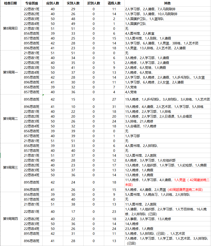 2、周三895班周建波,896班周颖晟篮球队训练后未回教室