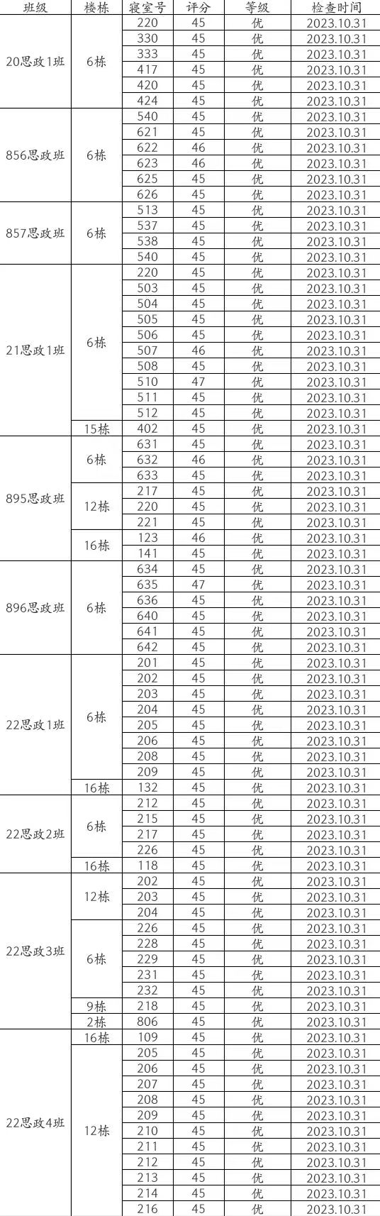 马院第九周公寓检查情况