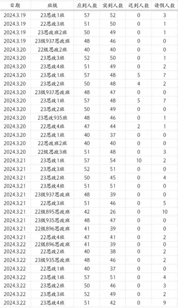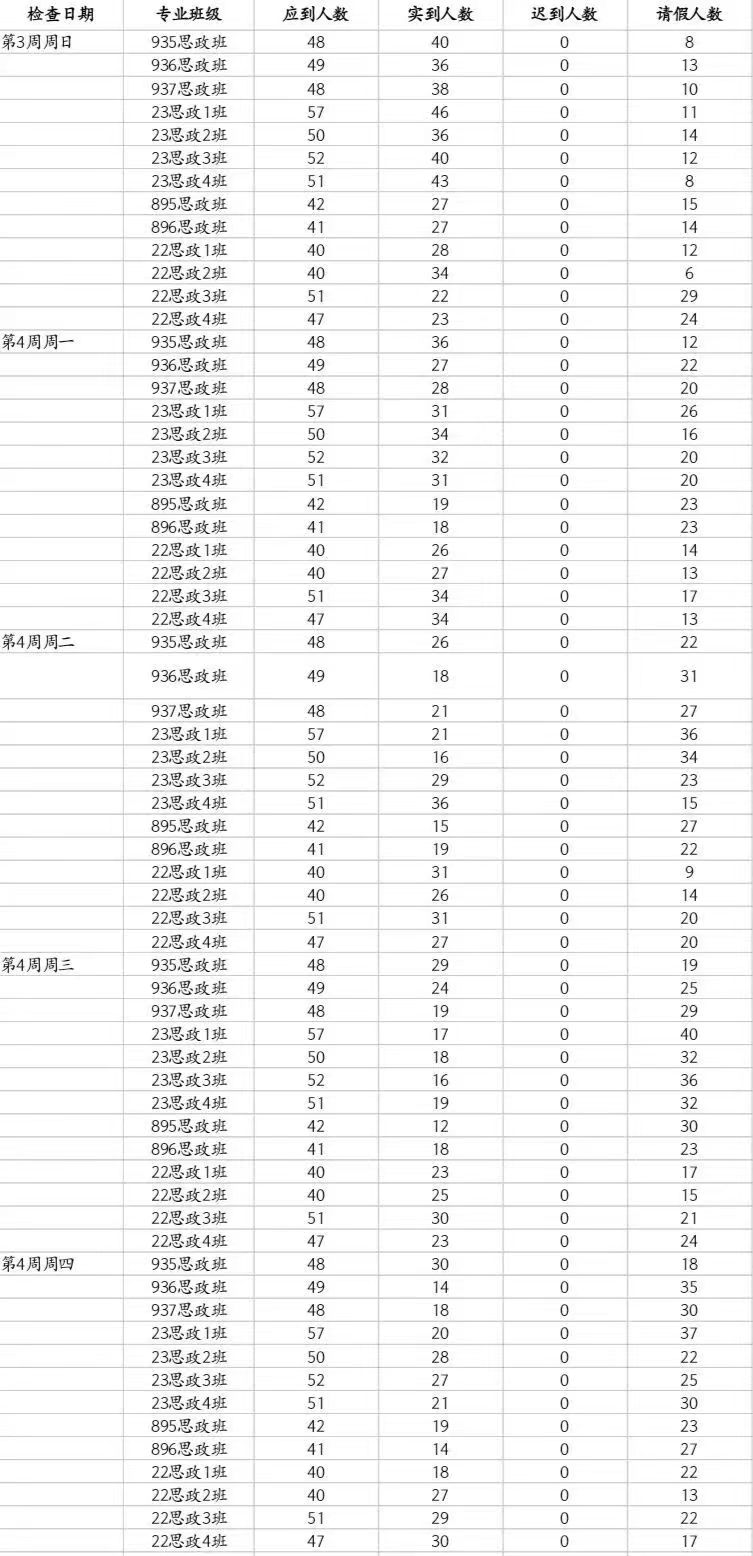 马院第四周查堂情况